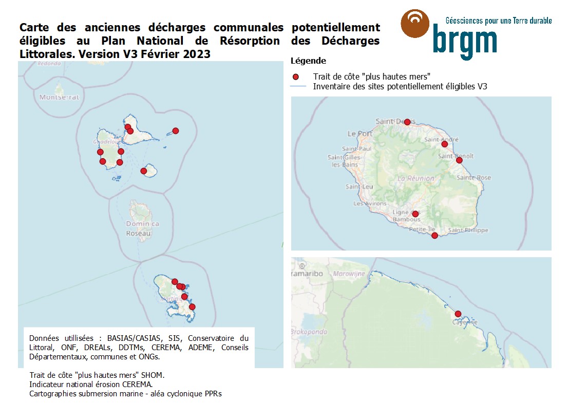 Parmi ces actions, le BRGM sous l’égide du Ministère de la Transition Écologique et de la Cohésion des Territoires (MTECT), s'est vu confié la réalisation de l’inventaire des décharges littorales historiques soumises à aléas marins (érosion du trait de côte et/ou submersion marine).