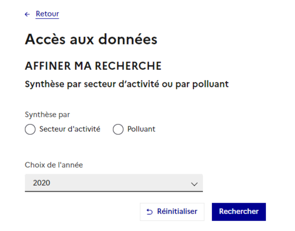 Les synthèses peuvent être obtenues par secteur d'activité ou par polluant, selon deux critères combinables entre eux :