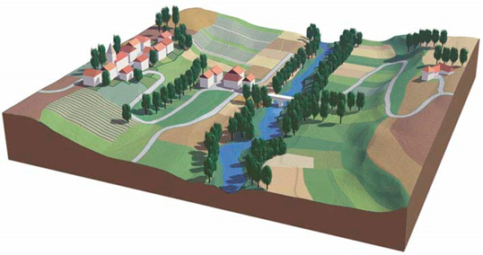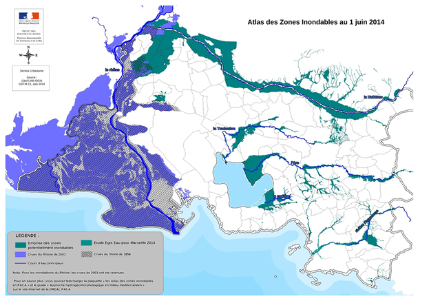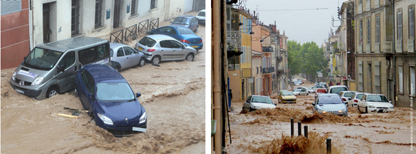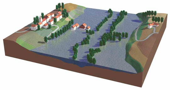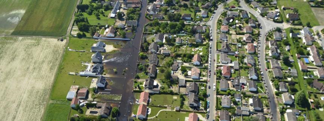 Une inondation est une submersion temporaire, rapide ou lente, d'une zone habituellement hors d'eau. Le risque d’inondation correspond à la confrontation, en un même lieu, d’un aléaEvenement menaçant ou probabilité d'occurrence dans une région et au cours d'une période données d'un phénomène pouvant ... (une inondation) avec des enjeux (humains, économiques, environnementaux, etc.) susceptibles de subir des dommages en cas de submersion. En France, le risque d’inondation est le premier risque naturel au regard de l’ampleur de l’importance des populations potentiellement affectées, des dommages qu’il provoque, du nombre de communes concernées et de l’étendue des zones exposées. Tout type de territoire peut être touché, qu’il s’agisse de zones urbaines ou rurales, de plaine ou de relief, ou de côtes littorales. Les inondations, généralement causées par des précipitations soutenues et prolongées, peuvent également provenir de la mer, des eaux souterraines ou de la fonte nivale.