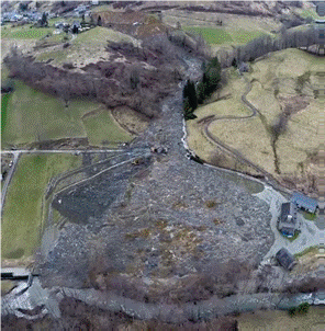 • les mouvements rapides, qui surviennent de manière brutale et soudaine. Ils regroupent les chutes de pierres et de blocs, les éboulements rocheux et les coulées boueuses.