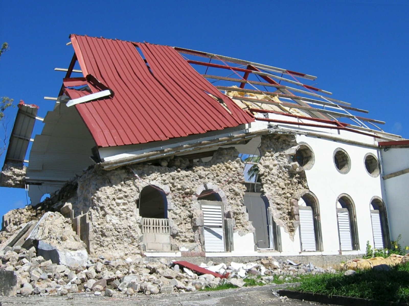 Église de Terre de Bas après le séisme du 21 novembre 2004 (Saintes, Guadeloupe). © BRGM