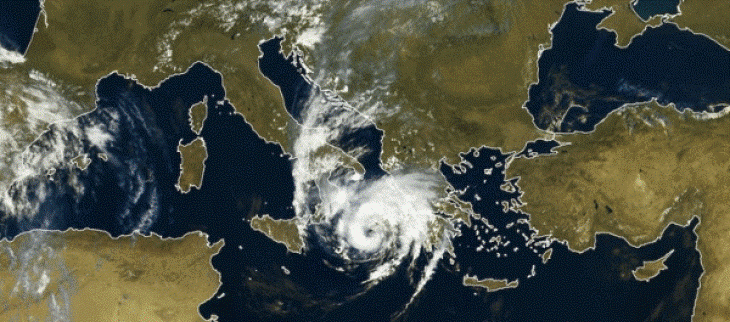 Le cas particulier des medicane22 : Le terme " medicane " est la contraction de " mediterranean hurricane ". Il s’agit d'une dépression qui se creuse sur le domaine méditerranéen, généralement entre les mois de septembre et de janvier, et prend des caractéristiques de système tropical, tempête ou cyclone tropical selon son intensité23. Ce phénomène est dû à la température de la mer qui reste chaude de plus en plus longtemps après l’été et à l’air qui se refroidit progressivement au début de l’automne.