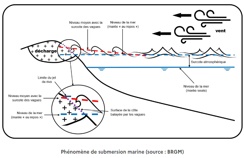 - situées dans une zone soumise à érosion1 ou dans une zone potentielle de submersion marine2.