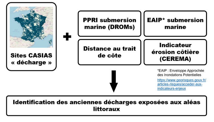 Parmi ces actions, le BRGM sous l’égide du Ministère de la Transition écologique , s'est vu confier la réalisation de l’inventaire des décharges littorales historiques soumises à aléas marins (érosion du trait de côte et/ou submersion marine).